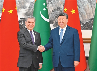 3月18日下午,国家主席习近平在北京钓鱼台国宾馆会见来华进行友好访问的土库曼斯坦民族领袖、人民委员会主席别尔德穆哈梅多夫。新华社记者申宏摄新华社北京3月18日电 (记者冯歆然)3月18日下午,国家主席习近平在北京钓