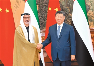 习近平指出,阿联酋是中国的全面战略伙伴,中方始终高度重视发展同阿联酋的关系。在双方共同努力下,中阿关系保持健康稳定发展,政治互信不断加深,务实合作稳步推进,人文交流丰富多彩。巩固和提升中阿关系是双方的坚定共识,符合两国人民期待。中方愿同阿方携手同行,打造更加稳固坚韧、富有活力的中阿全面战略伙伴关系。双方要继续在涉及彼此核心利益和重大关切问题上相互支持,保持高层交往,筑牢战略互信。加强发展战略对接,在能源、投资、贸易、科技等领域深挖潜力,深化互利合作。推动教育、民航、旅游等合作取得更大进展,密切人文交流,夯实民意基础。在联合国、金砖国家等多边平台增进协调合作,以中阿关系的稳定性应对国际和地区形势的不确定性,共同推动构建人类命运共同体。